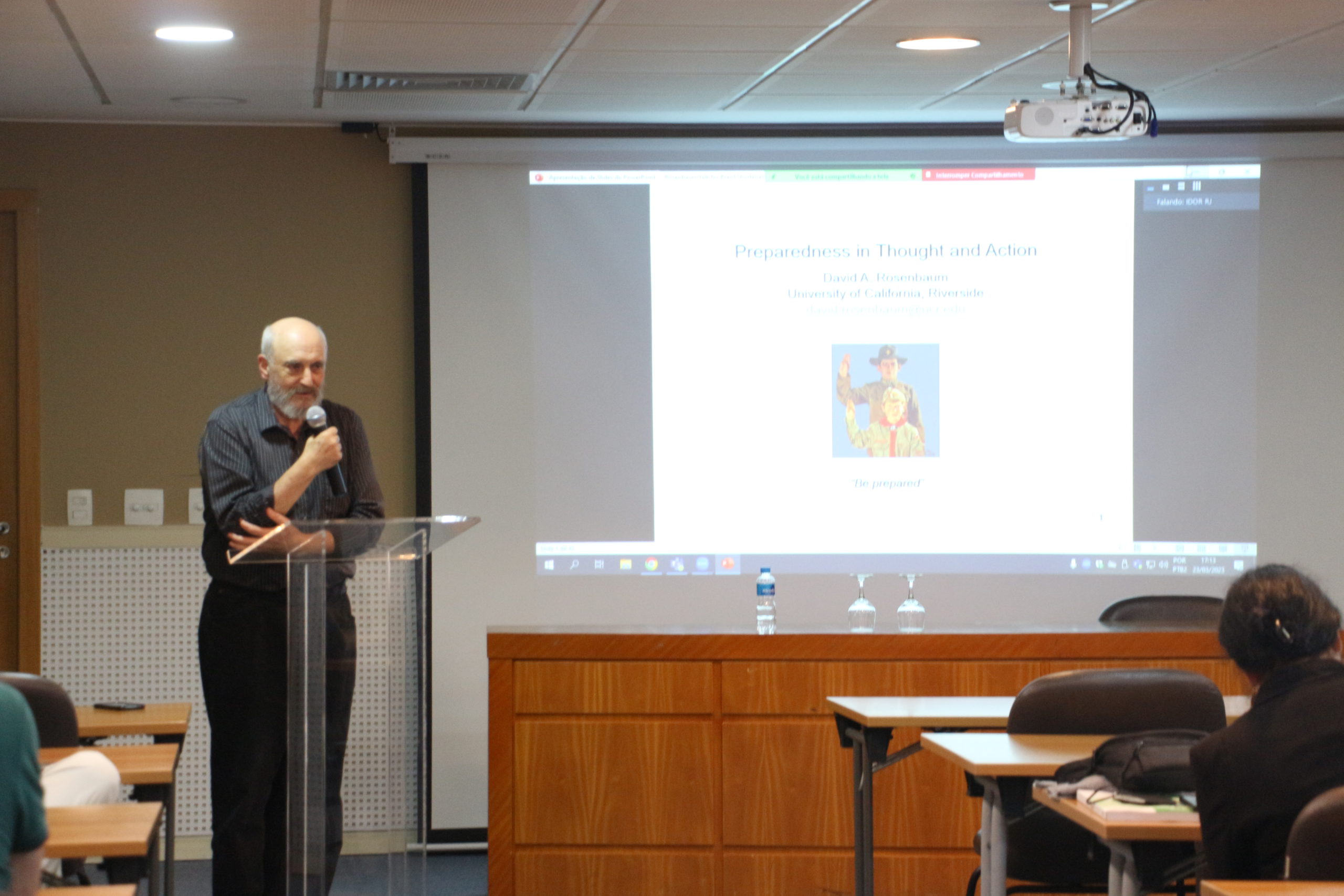 This Thursday, 03/23, the D’Or Institute for Research and Education (IDOR) received an international guest, Dr. David A. Rosenbaum, to give a lecture at the headquarters in Rio de Janeiro, in Botafogo. The meeting took place in person in the auditorium and online for remote participants. The introduction fell to Dr. Roberto Lent, a neuroscientist at IDOR and coordinator of the National Network of Sciences for Education (Rede CpE).